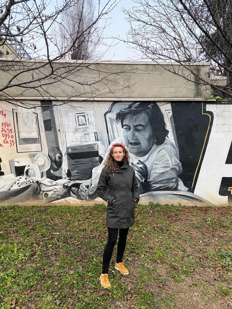 10 minutter efter stod vi i haven udenfor “Spazio Alda Merini”, som det hedder i dag. Mødt med synlige spor af de mange, der har opsøgt Via Magolfa før os.
