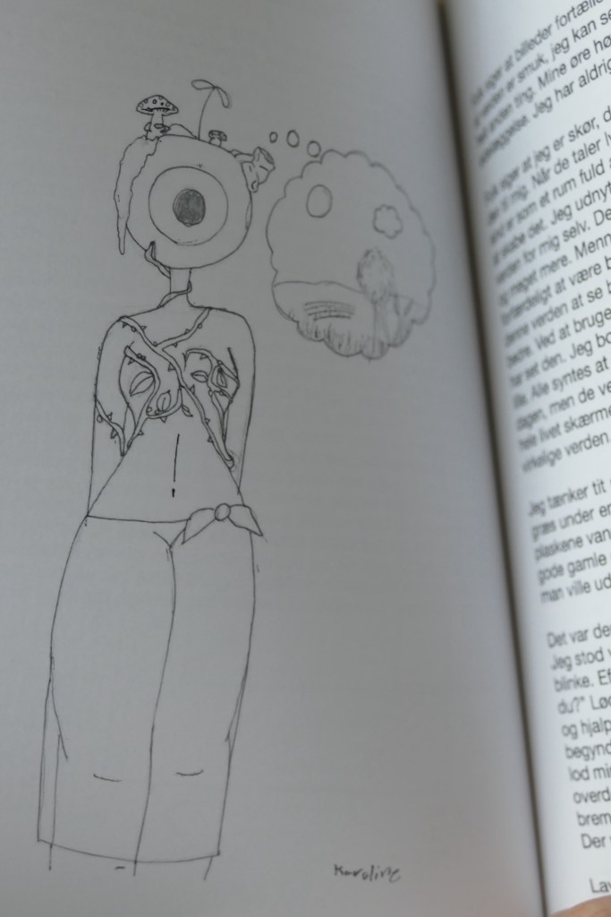 Carolines fortælling er blevet til på to dage og er inspireret af billedet nedenfor som, hun har tegnet på en workshop med Adam O, som er forfatter og tegner af trilogien “Den rustne verden”. Om børn der lever i en verden af skrald men skrider til handling, da deres tillid til de voksne er brugt op. Tydeligvis er den verden, Adam O både skriver og tegner frem tunet ind på de unges frekvens.