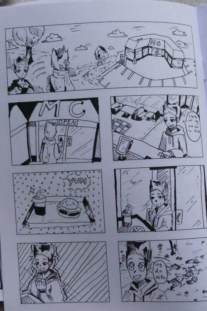 I de yngre klasser er emnet for de udgivne historier mere bundet, og tonen er lettere og mere gakket. To 4. klasser og to 5. klasser medvirker som tegneserieforfattere. Kyndigt og varmt guidet på vej af tegneserieskaber Christine Reinwald. “Tegn en historie med en figur og et sted, som du trækker op af en hat fra fælles samlingen” er præmissen. Et jordbær på månerejse, en vandpyt i zoologisk have eller en zombie på gågaden. Det dyrkes at tegne “grimt” for at slippe præstationsangsten. Nogle børn opdager med forundring et nyt talent og nogle voksne opdager børn, der allerede mestrer at tegne som få voksne. Her en imponerende 4. klasse elev fra Skovbakkeskolen, hvor vi har videreudviklet tegneserieprojektet.